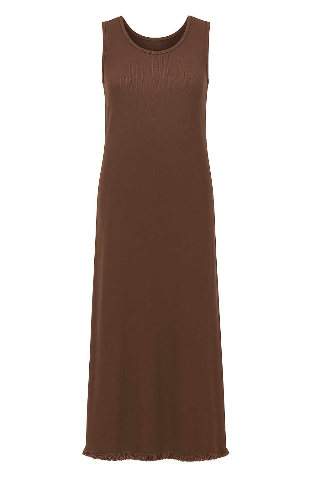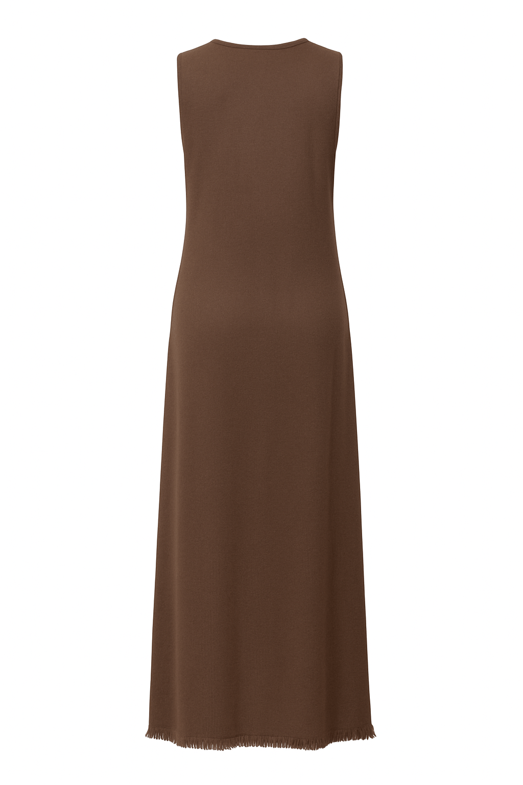 Deze mouwloze gebreide jurk in warm bruin is ontworpen voor comfort én veelzijdigheid. De jurk is vervaardigd uit een zachte, rekbare stof die soepel langs het lichaam valt zonder strak te zitten. Dankzij de lichte stretch behoudt de jurk zijn vorm, terwijl hij toch comfortabel meebeweegt gedurende de dag.